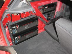 Renault Clio Hier stand High End Klang an erster Stelle. Das Edel-Clarion DRX-9255 mit seperatem Netzteil war hierfür erste Wahl. Eine Zapco SX Vorstufe bereitet das Signal für zwei Phase Linear Enstufen im Kofferraum auf, das dazugehörige seperate Netzteil fand hinter der Seitenverkleidung seinen Platz. Der 20er RS-Audio Sub bekam ein GFK-MDF Gehäuse für das rechte Kofferraumseiten-teil spendiert. Das Ergenbnis ist ein grandioses Klangerlebnis !!! | ![]() |