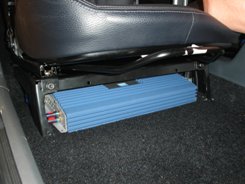 Smart Für den Bass sorgt hier eine Fertiglösung aus dem Hause JL Audio. Das Gehäuse be-herrbergt einen JL 6W0 16er Sub und sitzt im Beifahrerfußraum. Ein 2-Wegesystem von RS-Audio ergänzt den 16er Sub perfekt. Angetrieben werden alle Lautsprecher von einer 4-Kanal Xetec Enstufe, die unter dem Beifahrersitz ihren Platz gefunden hat. | ![]() |