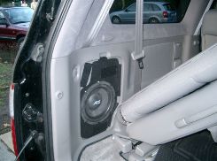 Lexus LX470 Eine Subwooferkiste kam bei diesem 7-Sitzer aus "California" nicht in Frage, also kam der 20er in ein speziell angepasstes Gehäuse hinter die Verkleidung im Kofferraum, wo auch die Dragster Endstufe und ein Xetec USC Ihren Platz fanden. Front- und Hecksystem kommen aus der RS-Audio ProSerie. Die A Säulenverkleidungen wurden für Bühne und bestes Staging umgebaut und mit dem org. Alcantara bezogen .Die gesamte Anlage wird weiterhin über das org.Multimediasystem von Lexus bedient. | |